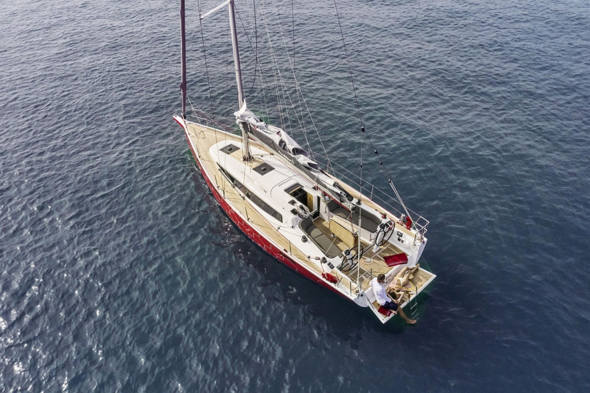 High tech materials allow the hull to be strong and stiff without excessive weight and high quality deck gear make sailing handling easy. Multiple rig and sail adjustments allow you to get the best from the hull shape but not at the expense of a nice, clear and easy to navigate cockpit.